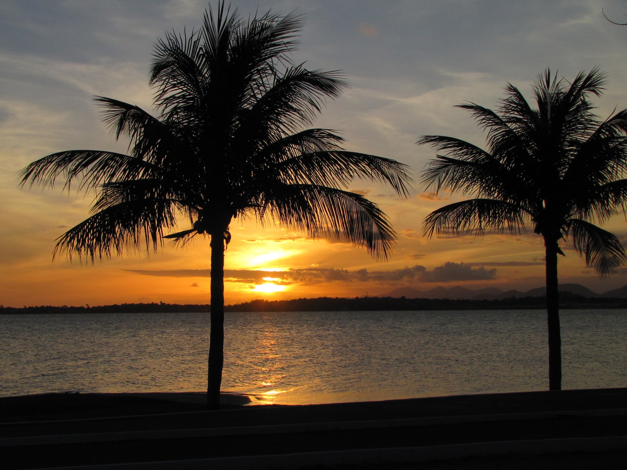 Der Sonnenuntergang über der Lagoa di Araruama, drittgrößte Meerwasserlagune der Welt, begeistert mit einer besonderen einzigartigen Stimmung. Palmen an den Stränden, die große, ruhige Wasserfläche und die Berge Rio´s im Hintergrund sorgen im Abendlicht für diese besondere Komposition.