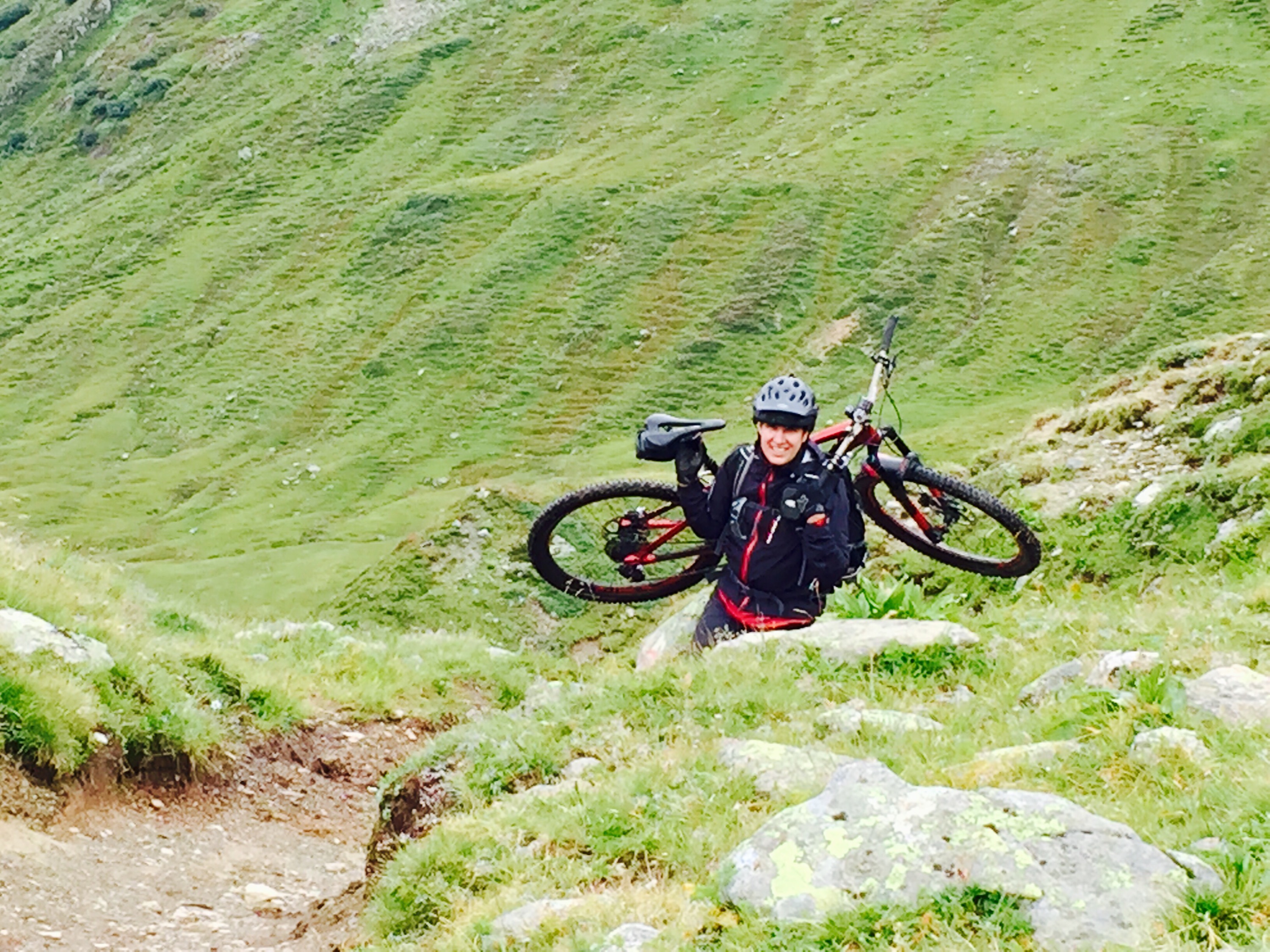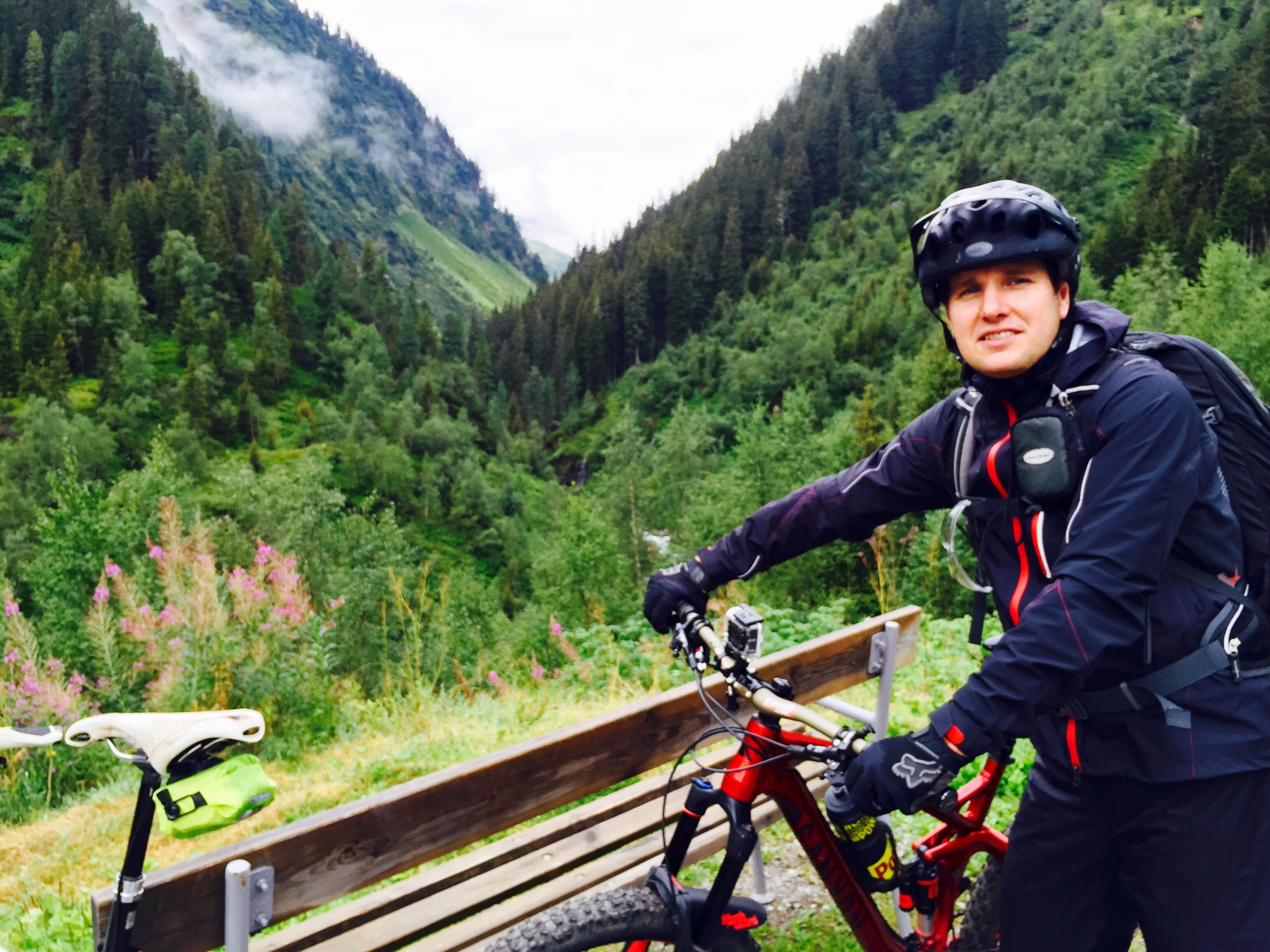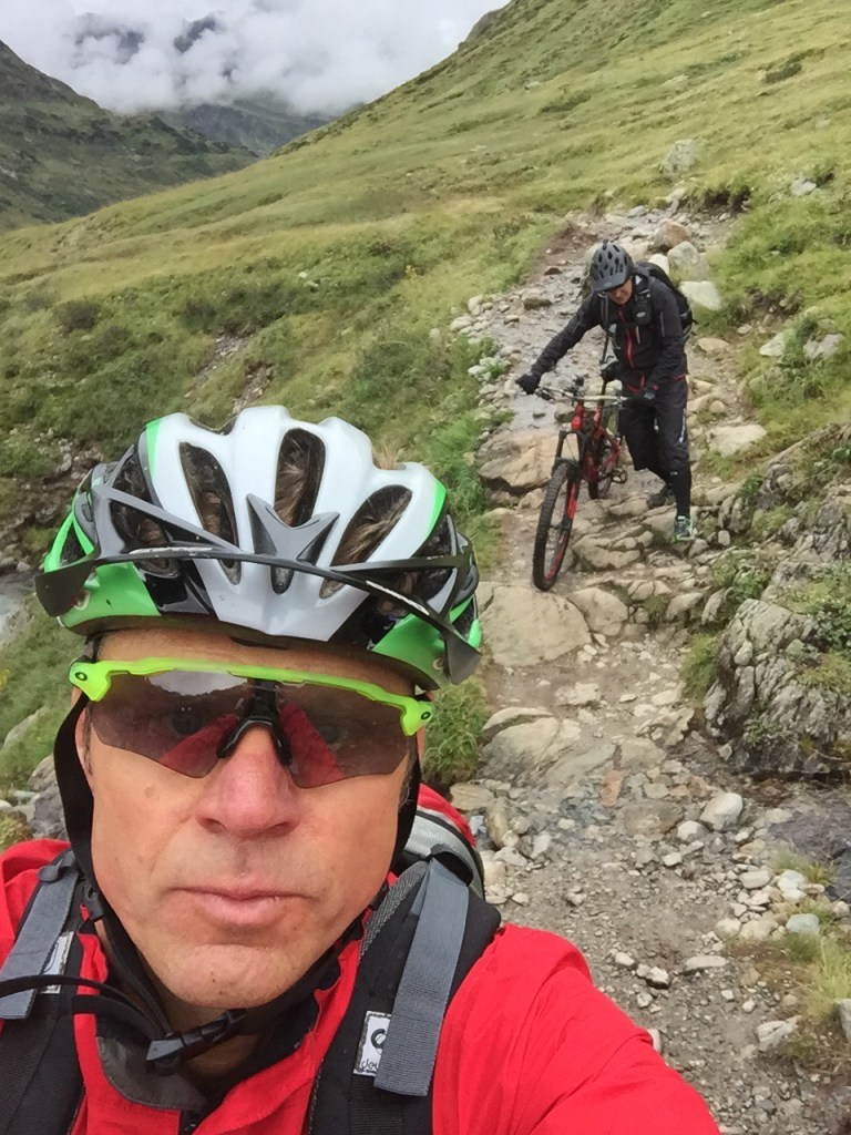 Ich war happy das mein Garmin Edge 810 uns zuverlässig, ohne lästiges Anhalten, in die richtigen Trails geschickt. Nicht so happy jedoch, dass meine geliebte absenkbare Sattelstütze den Geist aufgab. Natürlich direkt hinter dem ersten hohen Bergübergang and Heilbronner Hütte, vor der Abfahrt zum Kops Stausee.
