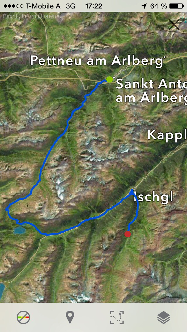 Naja, mit Oldschool Abfahrtstechnik kommt man auch bergab. Aber es fühlt sich nicht so dynamisch an. Eine Lösung muss her. Vor und hinterm Kops See Traumtails in atemberaubender Landschaft. Dann durchs Paznauntal. Immer bergab. Über Galltür, Mathon bis nach Ischgl.