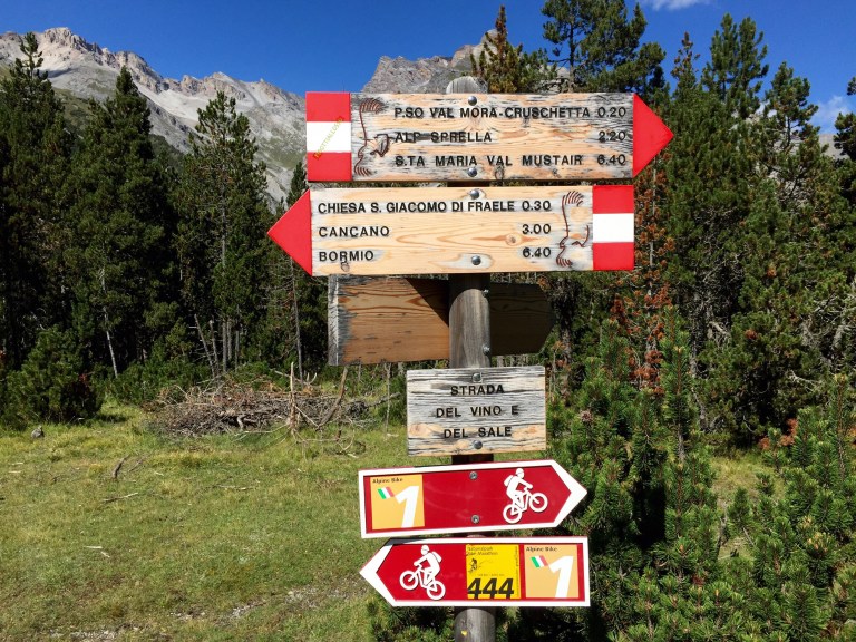 Jetzt lagen laut Planung wieder 1800 Hm vor uns. Aber das sind nur Zahlen. Steil hoch über Waldwege durchs Val Mora. Traumhafte leicht abfallende, winklige Singletrails immer direkt am wilden Gebirgsbach entlang. Auch hier wieder das Gefühl als gäbs kein Ende. Dann eine großzügige, langezogene Hochebene mit entspannter Fahrt durch locker Pinienwäldern, die sich mit riesigen Geröllfeldern und Wiesenflächen abwechseln. Kolossale Landschaftseindrücke in der Hochebene vom türkisfarbenen Lago di San Giacomo und Lago di Cancano.